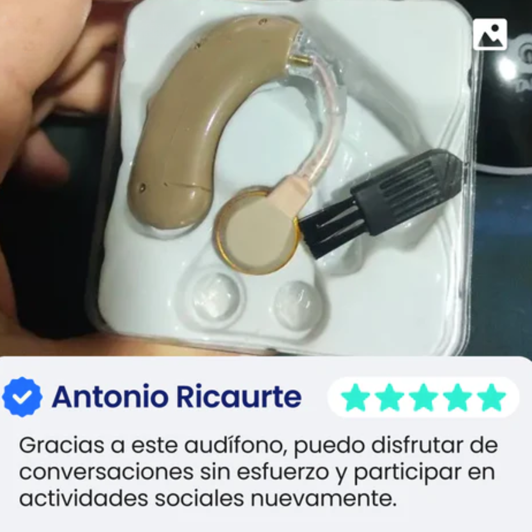 Sirve para escuchar mejor las conversaciones, la televisión o los sonidos del ambiente. No reemplaza a un audífono médico, pero ayuda a oír más fuerte y claro.